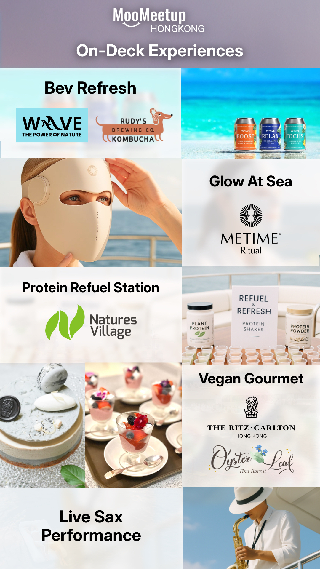 You’ve been on a boat party before… But have you experienced a 300-person yacht takeover on Victoria Harbour? MooMeetup partnered with ACE to create something truly special: a full-day immersive experience aboard five uniquely themed yachts. We brought together 300 of Hong Kong’s forward thinkers — sustainability champions, tech innovators, wellness leaders, and the plant-based in-crowd — in an inspiring setting where fresh ideas flowed as freely as the sea breeze.