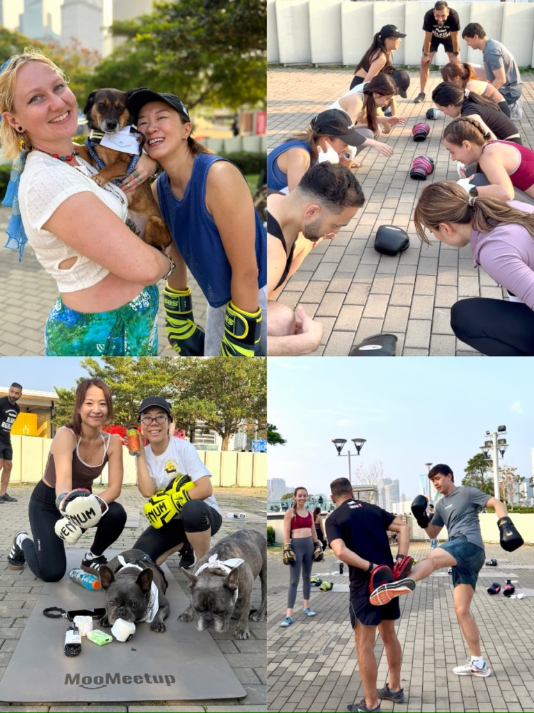 A sunny afternoon on Hong Kong Island — Muay Thai in the park, adoption dogs bounding between the crowd, and a community that showed up with open hearts and open wallets. Part fitness class, part dog meet-and-greet, all purpose.