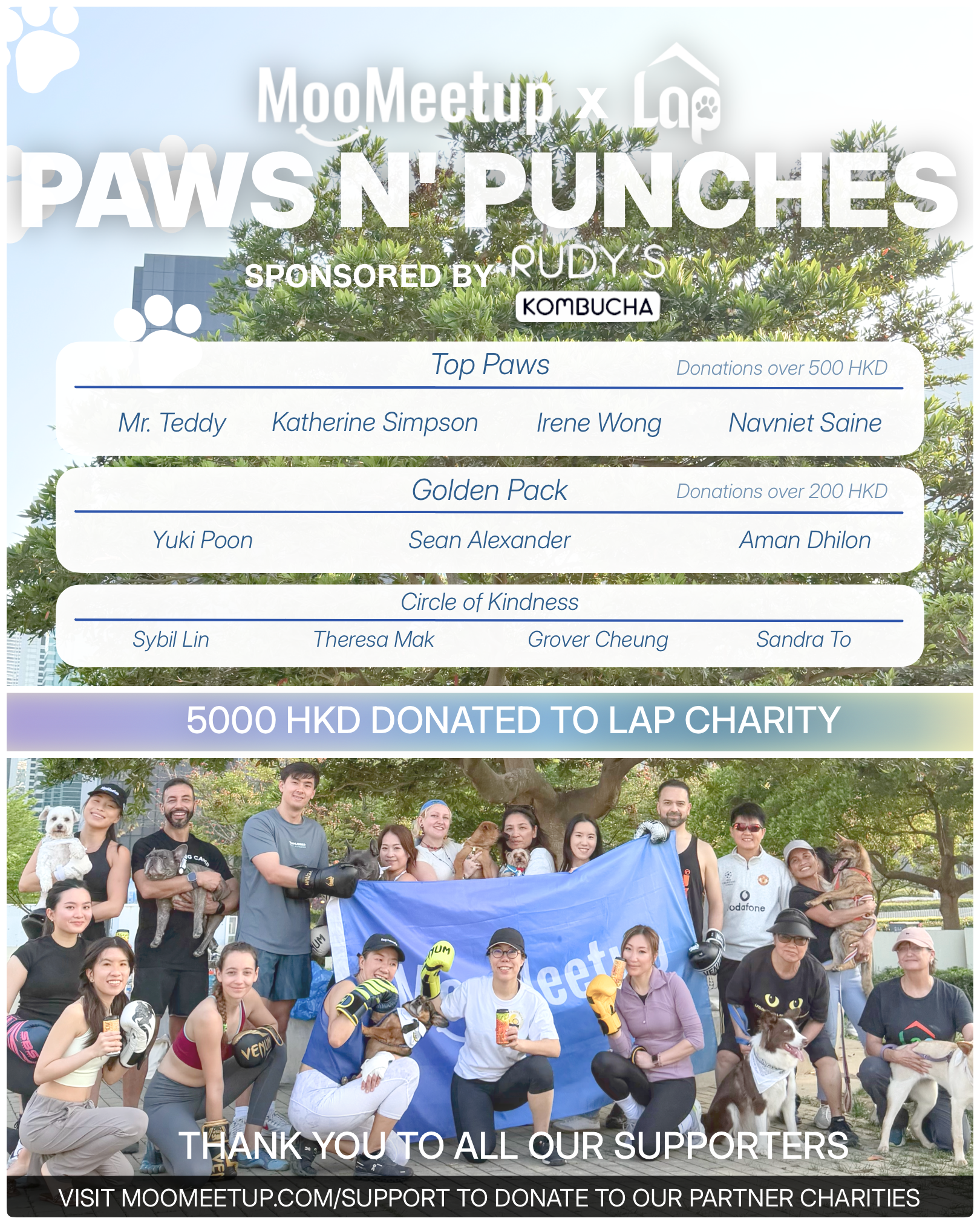 MooMeetup supports animal welfare across Hong Kong. We'll keep showing up — with paws, punches, and purpose.
